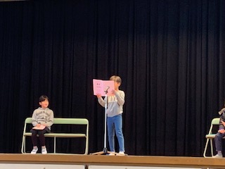 今日の月曜朝会は、1・3・5年生の作文発表会でした!