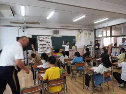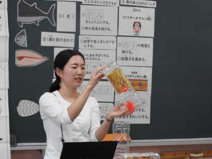4年生の5時間目授業で、「魚の良さについて考えよう」という栄養の授業がありました。ふだん食べている魚にはどんな栄養が含まれているのか、学習しました。積極的にみんな手をあげて、たくさん意見を言いました。牛や豚や鶏の肉を食べることが多いけど、魚の良さを知りました。血液もさらさらになるということです。たくさんの先生方が見に来られ、しっかり学習しているみんなの姿を見ることができました。