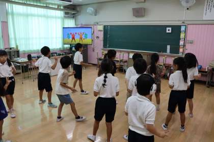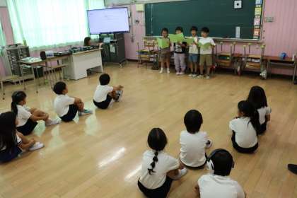 エビカニクスを踊ったり、1年生がおおきなかぶの音読をしたりと頑張っています。