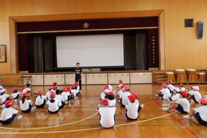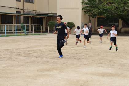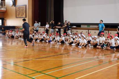 今日は、元走高跳日本代表の福本 幸さんと今年の東京デフリンピックの走高跳の日本代表として出場する佐藤 秀祐選手に講師として来ていただきました。お話を聞いた後、速く走るためにはどうすればよいのかについてみんなで考えながら、トレーニングをしました。