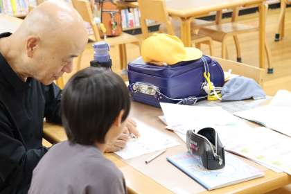 100マス計算をしたり、国語の物語の問題を先生といっしょに解いたり、しっかり学習しました。