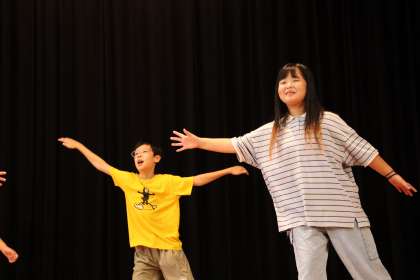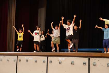 児童会・集会委員会の子どもたちが、朝から門の前であいさつをします。