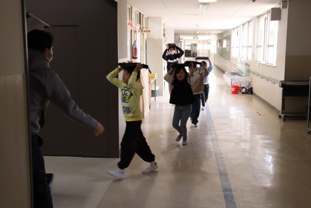今日は、避難訓練がありました。事前に地震が起きたらどのようにして身を守るかなど各学級で話をしてから臨みました。