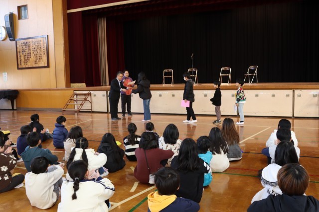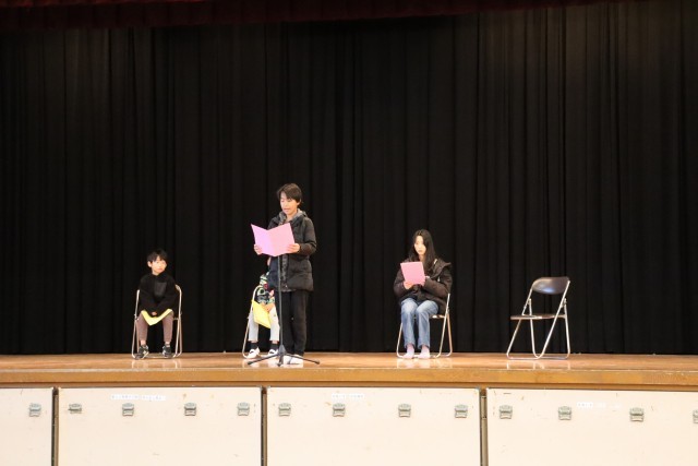 今日は、作文発表会がありました。今日は、2年生1名、4年生1名、6年生2名の発表がありました。4人とも一人で堂々と舞台に立ち発表することができました。他の児童も姿勢よく真剣に聞くことができました。
