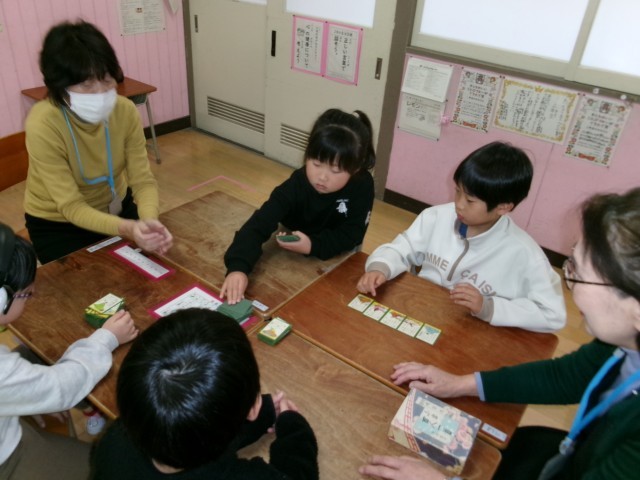 地域の方におこしいただき、昔遊びを教えていただきました。子どもたちは、はじめてする遊びもあり、興味津々。しっかりと話を聞いて昔遊びを楽しみました。ありがとうございました。