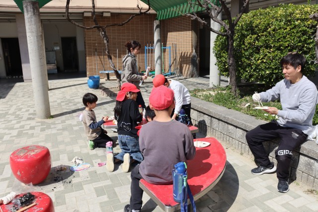 3年生は、七輪に炭を入れ、火をおこしました。おもちを焼きました。焦げないようにがんばりました。