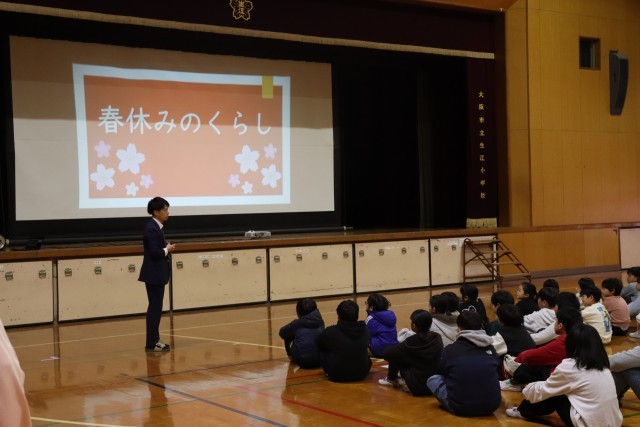 次に、菅野先生から春休みの過ごし方について「は・る・や・す・み」の頭の5文字の内容について、