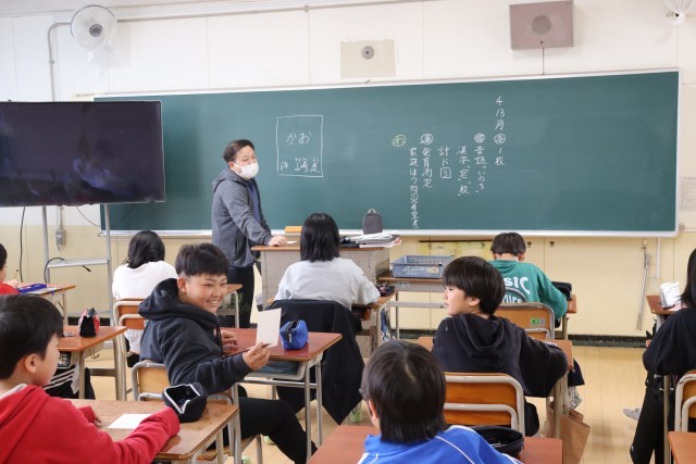 自分の名前を書き、似顔絵を描きました。