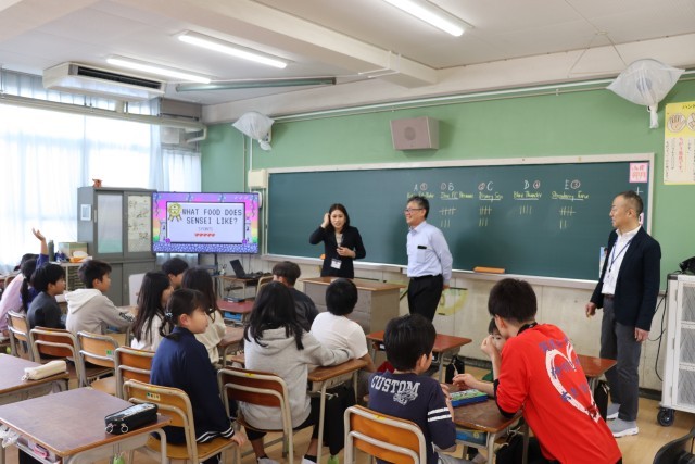 英語のマジョリィ先生と自己紹介クイズをしました。たくさん英語を使いました。