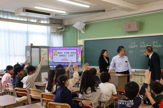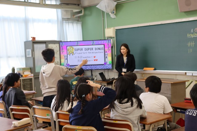 英語のマジョリィ先生と自己紹介クイズをしました。たくさん英語を話しました。