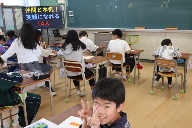 学級目標をみんなで1文字1文字それぞれが書きました。