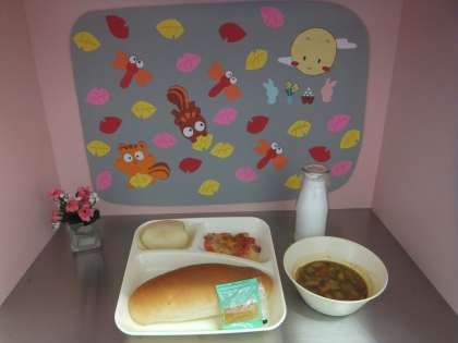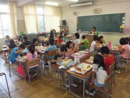 鶏肉とてぼ豆のカレー煮は、今回のカレ—ルウの素には、米粉が使われ、いつもの小麦粉は使用されていないものでした。 子どもたちは、おいしそうによく食べていました。