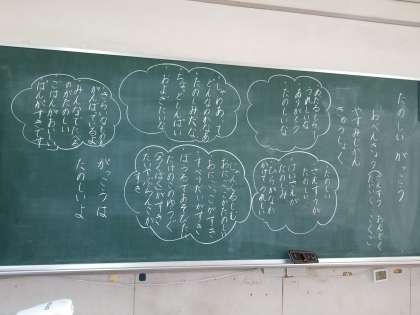 1年生はじめての道徳の学習をしました。今日の学習は、学校での楽しいことや、楽しみなことについて話をしました。