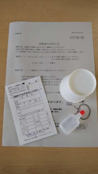 保健室より 尿検査のお知らせ その1 4月22日(月)