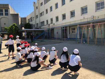 踏み切り線までの自分の歩数を考えて、より良い記録を出すための調整をしました。走り始めはゆっくりと走り、最後の2歩で勢いをつけることを教えてもらい挑戦する姿も見られました。