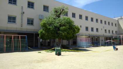 管理作業員さんに、校庭の樹木の伸びすぎた枝葉を刈り取っていただきました。子ども達に元気いっぱいに遊んでもらえるよう、いつも校舎内の環境整備を行っていただいています。
