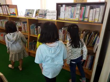 ずっと楽しみにしていた、初めての図書の時間です。図書館補助員さんに図書室の使い方やルールを教えてもらった後、好きな本を1冊選んで借りました。「お家に持って帰ってもいいの?」「やったあ!」と、とても嬉しそうにしていました。