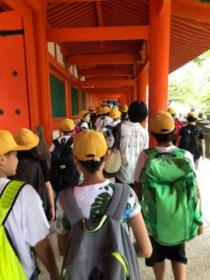春日大社のチェックを通った班は、ゴールの飛火野を目指しています。