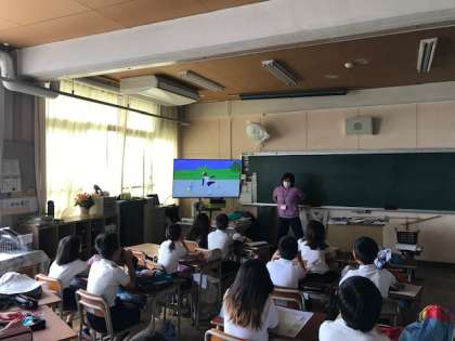 教室で走り方の映像を見て、早く走るためのコツを確認してから行いました。