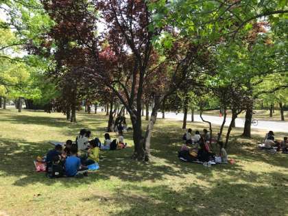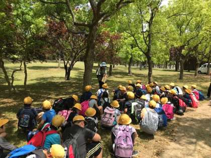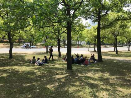 見学が終わり、鶴見緑地公園に着きました。今からお弁当タイムです。