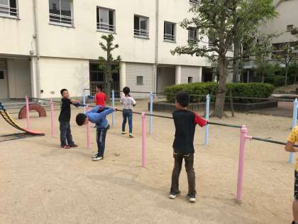 また、鉄棒の危険な部分がないかみんなでチェックをしました。鉄棒に取り組みやすいようにクッションカバーも取り付けました。