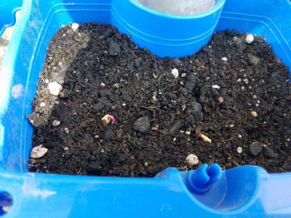 月曜日に種を蒔いたアサガオが芽を出し始めました。