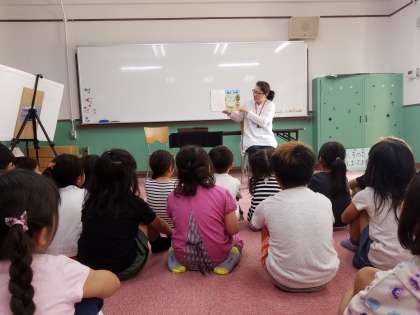 図書ボランティア「くすのき」のみなさんに、読み聞かせをしていただきました。絵本や紙芝居、パネルシアター、大型絵本とたくさんのお話を聞いた子どもたちは口をそろえて「面白かった!」と感想を言っていました。