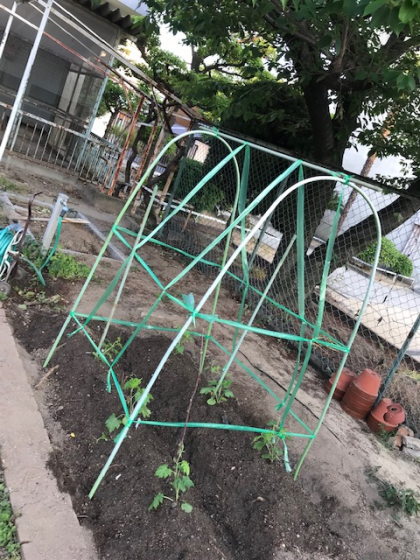 育ったつるが高く上に伸びていけるように、ネットも設置しました。