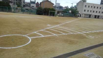 今日は放課後の時間にソフトボール投げや、50m走のライン引きを行いました。