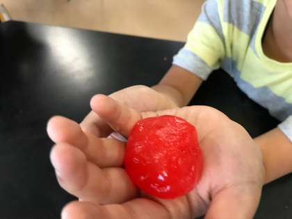 どの児童も、完成したスライムを楽しそうに触っていました。