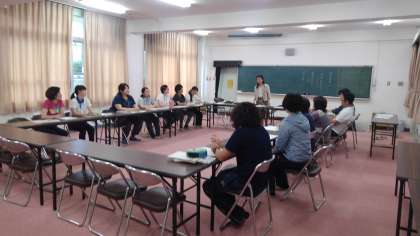 教育委員会事務局指導部の吉川さわ子先生に、講師として来ていただき研修会を行いました。