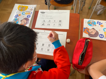 自分の名前、スペル、誕生日、好きな教科とスポーツが言えるようになっていますので、ご家庭でも聞いてあげてください。