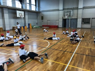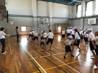 6年生と一緒に体力テストを行いました。お兄さんお姉さんが優しく教えようとする姿はとても微笑ましかったです。