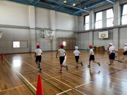 走っている友だちへ「がんばれ」「あと〇回いけー!」など応援している姿が見られました。今回の最高記録は107回でした。みんな汗だくになりながら、一生懸命がんばっていました。