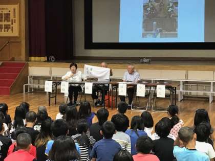 1時間目の「平和学習」では地域の方々に当時の戦争でのご体験や疎開先での暮らしの話を聞かせて頂きました。