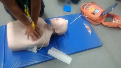 AEDの使い方や、急に倒れた人がいた場合の対応の仕方などを教えていただきました。