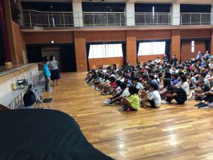 高学年の児童、保護者の方々、教職員での学習会でした。