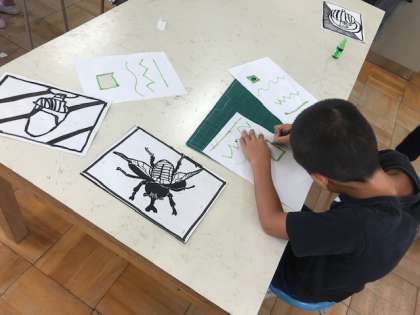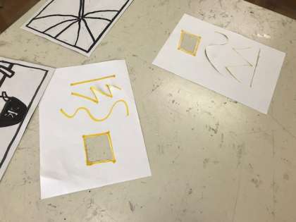 切り絵の練習のためカッターの使い方を学習しました。直線やギザギザ線、曲線や四角形のくり抜きを行いました。カッターの操作は難しく、苦戦している児童がたくさんいました。本番の切り絵作成に向けてもう少し練習を続けていきます。
