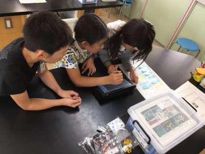 プログラミングの学習では、電流の強さや電気の働きの大きさについて、実際にロボットにプログラムを組むことで機械の仕組みを理解することをねらいとしました。