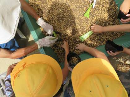 教えてもらった手順を間違わないよう、真剣な表情を浮かべながら肥料を入れました。できた後は満足した面持ちで自分たちが植えた苗を観察しました。これから、3年生みんなで成長を見守ります。