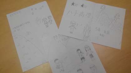 しおりの表紙などに使うイラストを、子どもたちが描きました。終業式まであと少しですが、がんばってみんなで準備に励んでいます。