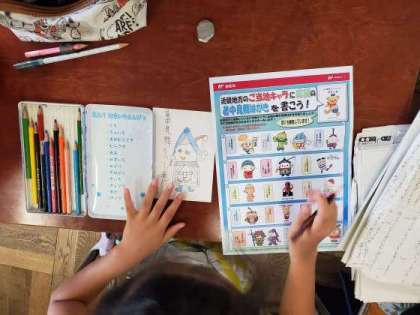 近畿地方のご当地キャラクターへのメッセージと絵をかきました。文字の大きさに苦戦しながら、宛名も自分たちで書くことができました。