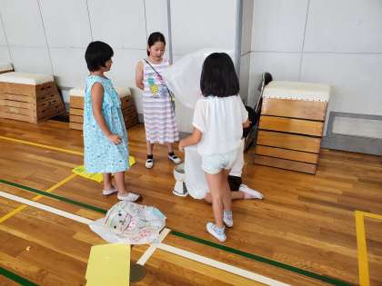 子どもたちは楽しそうに、工夫しながら空気や風を利用して作品をとばしていました。