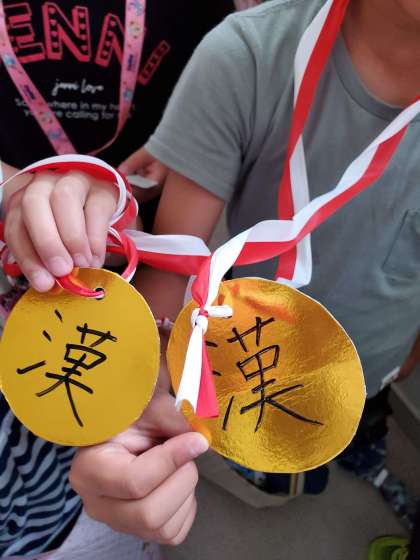 1学期に行われた漢字テスト20回において、全て100点を取れた子どもたちが、漢字王の証であるメダルをゲットしました。毎日コツコツとよく頑張りました。