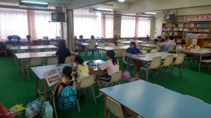 子ども達は読書や勉強をしています。図書館開放は、土日を除く8月1日(木)まで行っていますので、時間があれば参加するようお子様にお声かけください。