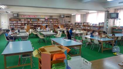 雨天のため、プール開放・水泳補講は中止となりましたが、図書館開放は行いました。
