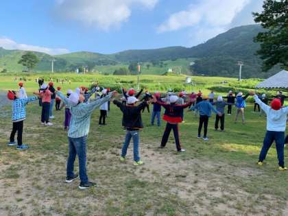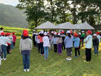 布団の片付けや洗面が終わった後は、朝の集いです。班長を中心に時間通りに行動できています。