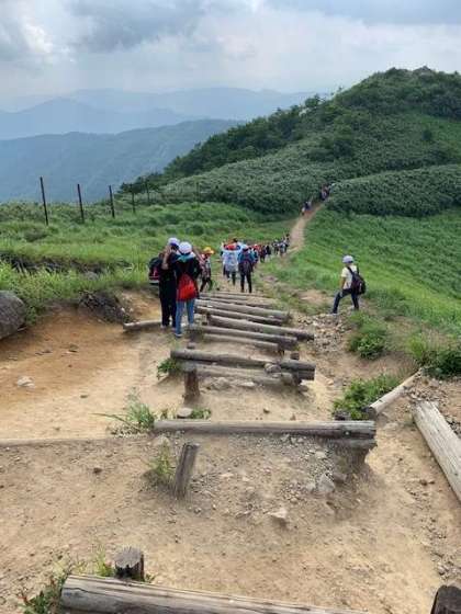 班ごとに下山していきます。子どもたちは頂上での休憩で、体力と元気を少し取り戻したようです。