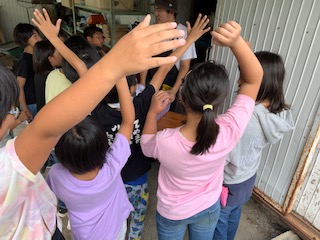 食器や道具を洗ったら、先生や宿舎の方にチェックをしてもらいます。一生懸命みんなで協力して片づけます。