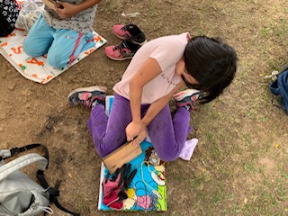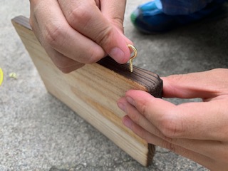 板を磨いたあとは、ヒートという金具を取り付けます。板の中央部分に上手に付けようと頑張っています。